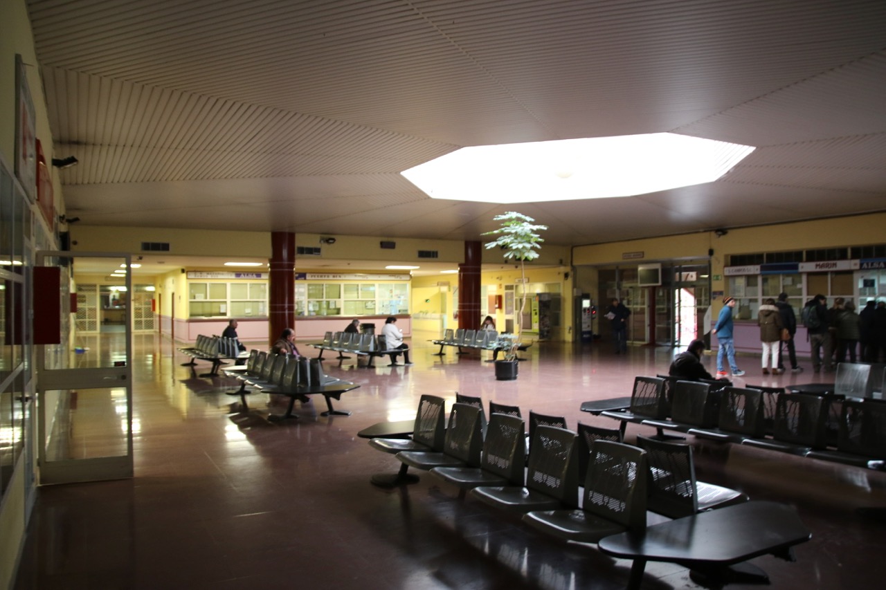 Estación de autobuses de arquitectura ochentena