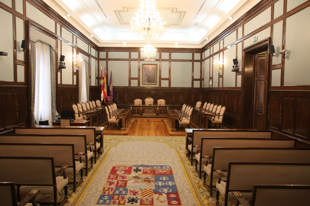 Salón de plenos funcional de tono verdes